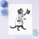 Uma caneta preta e branca vintage e desenho de tinta de um gato vestindo óculos e um casaco a tirar o chapéu de cima. Clique em Personalizar para adicionar seu nome ou mensagem, alterar o tamanho e muito mais.
