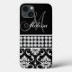This monogrammed black and white damask pattern has a photo of this design embedded into the hard plastic cover. The design is made up of a black and white damask pattern, a print of three rows of white diamonds in a stripe and an area where you can add your name and monogram initial in gorgeous script fonts. Be stylish and girly all at the same time. Design by Elke Clarke©2012. Graphics licensed for use. You can "customize it" and chnge the background color and font.