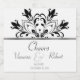 Etiqueta de bebida floral de cor branca e escura. Texto pode ser personalizado para o dia do seu casamento ou qualquer tipo de celebração.