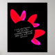 Black poster with red and pink hearts.