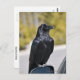 Um Raven muito chato sentado num espelho de carro à procura e à espera de mexilhões de comidas. Fotografado no Parque Nacional de Yellowstone.