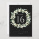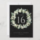 Um cartão preto, de mesa de casamento de dois lados, com morangos pintados à mão e eucalipto dispostos em uma bela coroa botânica. Todo o texto é totalmente editável. Outros designs, produtos de números de tabela e itens de coordenação estão disponíveis na minha loja.