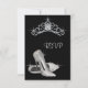 Cartão RSVP do partido de tiara Quinceanera, branco preto. Calçados de salto alto branco preto Quinceanera RSVP. Tiara RSVP. Cartões de RSVP Quinceanera.