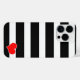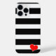 A modern and trendy design of thick black and white stripes and a red heart, that is placed in the bottom corner of the design. This item is fully customizable. You may add your own text or you may want to change the stripe colours, the choice is yours.
