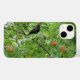 Esta capas de iphone fantástica mostra uma fotografia de um pássaro negro sentado numa árvore. Perto da árvore estão grupos de bagas vermelhas brilhantes. Esta foto foi tirada no auge do verão.
