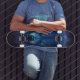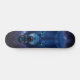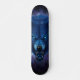 Unleash the wild on the streets with this captivating skateboard deck design featuring a ferocious, snarling wolf head. Rendered in a stunning dark fantasy illustration style, every detail of its textured fur is brought to life, culminating in piercing, electric blue glowing eyes that command attention. Set against a mystical backdrop of a cosmic nebula swirling with deep purples and blues, this design evokes raw power and otherworldly energy. Perfect for riders who embrace their inner beast and want a board that truly stands out from the pack. Ride with the spirit of the wolf.