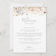 Esta bela carta de boas-vindas do casamento de Bodho Wildflower é perfeita para um casamento rústico. A design apresenta flores cor-de-rosa, roxa, esbranquiçada, amarela, azul empoeirado, vermelha, silvestre burgundy montadas em um padrão floral perfeito e delicioso, evocando beleza natural. Personalize a frente com uma mensagem de boas-vindas para seus convidados e seus nomes. Personalize as costas com a programação de eventos e outras informações úteis.