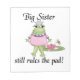 A Irmã Grande guarda caixas, azulejos, ornamentos, cadernos, travesseiros decorativos, gel mousepads, postagem, adesivos e outros grandes itens de irmãs roupas e presentes que incluem um sapo de menina e uma almofada de lírios e texto que diz: "A Irmã Grande ainda governa a plataforma!". Presentes de irmãos excelentes para a irmã mais velha quando o novo irmãozinho ou irmã mais nova chegar!
