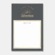 Notas de posto com uma ilustração dourada sobre um fundo de cinza preta. Projetado com uma ilustração de uma montanha com raios solares brilhando por trás. A tipografia diz: "A vida é uma descoberta de sonho de uma Aventura". Um quadrado branco com uma borda de folha de ouro falso para escrever dentro.
