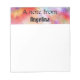 Bloco de notas de cor d'água com nome. O bloco de notas apresenta uma abertura de cor vibrante, no estilo de aquarela, através do seu cobrir. A design de abertura artística lembra as aquarelas que fluem se misturando. O bloco de notas também inclui um espaço designado para escrever um nome, permitindo a personalização.