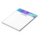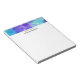 Bloco de notas com um fundo abstrato cósmico. Cores vibrantes girando de azul claro, rosa e roxo. Estrelas brancas espalhadas ao redor.