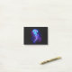 Água-viva grande, azul, desenhada artisticamente, brilhante, brilhante, com longos tentáculos sobre fundo preto com bioluminescência roxa. Água-viva luminosa.