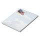 Pasta de notas de 5,5" x 6" com a imagem de uma bandeira americana que se acenava e de uma águia careca em voo contra um céu azul nublado e lavado. Veja toda a coleção de Bloco de Notas Patriótico dos anos 40 nos TOUCHES ESPECIAIS | Seção Favoritos para festas.