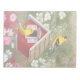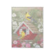 Uma cena lindamente pintada de potes americanos e uma brilhante casa de pássaros ricos, ao estilo da cabana vermelha, em um jardim florescendo com madeira e flores cosmos. Trabalho de arte realista criada de uma pintura do artista da vida selvagem Crista S. Forest.