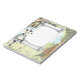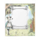 Um bloco de notas de 5,5" x 6" com uma imagem antiga Alice no País das Maravilhas de Alice quando ela tem 10 pés de altura ao lado de um vazio rolando em um cenário de floresta. Veja toda a coleção Wonderland Notepad nos TOUCHES ESPECIAIS | Seção Favoritos para festas.