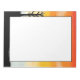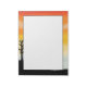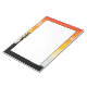 Um belo bloco de notas com uma borda de pôr do sol de cor d'água. As cores/cores incluem laranja, amarelo, azul e preto.