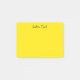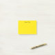 Um bloco de notas de post-it amarelas brilhantes com um modelo preto do texto.