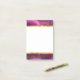 Notas pegajosas com um design elegante abstrato. Cor de ametista roxa escura com fitas de ouro aninhadas entre estratos em camadas. Design rica e bonita. A camada sobre o topo é uma estrutura retangular branca com uma borda falsa de folha de ouro, para que você escreva dentro.