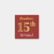 Este simples design de nota apresenta uma mensagem como "NameHere's 15 Birthday!", com o "15" a ter um aspecto de cor falsa/imitação, semelhante a ouro, sobre um fundo de cor vermelha. O nome pode ser personalizado. Notas como estas poderiam talvez ser usadas como decorações numa festa de aniversário para alguém que comemora o seu décimo quinto aniversário. [~Z0000173]