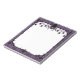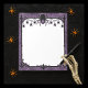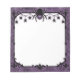 Este bloco de anotações assombrosamente elegante apresenta uma profunda borda roxa com padrões de teias de aranha e ornamentado preto de escrolo. No topo, uma aranha grande com aranhas pequenas balançando cria um olhar gótico brincalhão, mas assustador. O espaço escrevendo branco nítido contrasta lindamente com a estrutura escura, fazer cada nota se destaca com sofisticação estranha.
