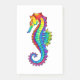 Articulação artificial, brilhante, arco-íris, cavalo de mar poligonal sobre fundo branco. Tatuagem brilhante.