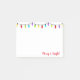 Este posto de feriado que ele anota é mostrado em um festivo impressão de luzes de Natal com texto "Feliz e Brilho" Personalize este item ou comprar como está.