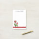 Estas notas têm tulipas vermelhas delicadas e uma beira de joaninhas bonitos com texto acima para você personalizar com seu nome.