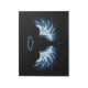 Bloco De Notas Asas Anjos Azuis Brilhantes em fundo preto