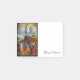 Crescendo em nuvens ouros Jesus olha para seus seguidores. O fundo inclui cidades do castelo e montanhas. Pintura do artista italiano Benvenuto Tisi c1510-1520.