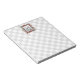 Bloco de notas de 5,5" x 6" com uma imagem de uma cinza e um quadro de xadrez branco e uma Alice preta e branca vintage na Terra Maravilha da Alice sob ataque dos Cartões em um quadro de pranchas preto e branco sobre um fundo de cartas de jogar em vermelho. Veja toda a coleção Wonderland Notepad nos TOUCHES ESPECIAIS | Seção Favoritos para festas.