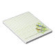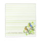 Um bloco de anotações verde personalizado decorado com pássaros azuis machos e fêmeas em uma árvore Hawthorn florescente em primavera desenhada com tinta e aquarela. Inspirado pelo pássaro e flor estadual do Missouri. Muito bom para lembretes ou para um presente de professor.