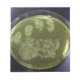 Foto de Staphylococcus aureus que cresce numa placa de ágar salgado manitol.