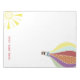Um bloco de notas com uma ilustração retrorinspirada de um balão de ar quente no canto superior direito e sol no canto inferior esquerdo. Personalize com seu nome no final.