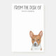 Estas postas são incríveis! Eles apresentam uma adorável aquarela Basenji e têm "Da Mesa de" e um nome. Eles seriam um presente super fofo para seus amigos ou família que amam Basenji.