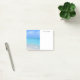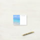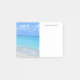Sticky notes with a scenic tropical photograph. A secluded beach with white sand and turquoise water.