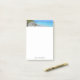 Sticky notes with a scenic tropical photograph. A secluded beach with white sand and turquoise water.