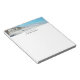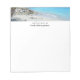 Notepad with a scenic tropical photograph. A secluded beach with white sand and turquoise water.