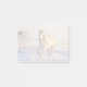 Notas pegajosas com uma fotografia de um lindo cavalo branco. Atravessando um campo coberto de neve. Majestosa e bonita.