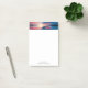 Notas pegajosas com uma fotografia maravilhosa. Um lugar cênico. Um lago tranquilo com uma doca de madeira que se estende para fora. Definir o sol fornece lindas cores no céu, vermelho e azul vibrantes.