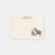 Notas pegajosas com um belo desenho de aquarela. Com um par de cavalos, castanho e branco. Cabeça e pescoço visíveis com tinta pingando na base do pescoço. Vírus sudoeste.