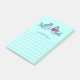 Adicione o nome do seu filho a este adorável bloco de notas adesivas de desenho animado de tubarão kawaii! Perfeito para crianças que amam tubarões e também adoram escrever cartas e fazer anotações! Ótimo para crianças que amam animais marinhos, tanto meninos quanto meninas! Também é um ótimo presente para qualquer criança!