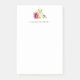 As notas florais personalizadas elegantes apresentam uma postura de flores de aquarela em roxo violeta, cor-de-rosa-branca e verde. Personalize com um nome, monograma, nome comercial ou mensagem na parte inferior em azul-da-meia-noite.