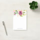 As notas florais personalizadas elegantes apresentam uma cobertura de flores de aquarela em violeta púrpura, cor-de-rosa-chico e verde. Personalize com um nome, monograma, nome comercial ou mensagem na parte inferior em azul-da-meia-noite.