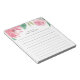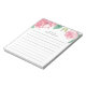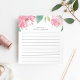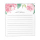 O bloco de notas floral chico apresenta uma borda superior de flores de peônias de cor d'água em cor rosa vibrante com folhas verdes e peludas. Personalize com duas linhas de texto personalizado em letras modernas; mostradas com a saudação francesa "bonjour" e o seu nome. Pautado.