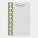 Keep your reminders stylish with these blue retro sticky notes that have a geometric border on one side in green and gold on a soft grey background. The bold “Reminder” header is editable. A sleek choice for workspaces, planners, or school binders.