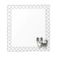 Destei's original cartoon illustration of a blue merle long coat Chihuahua breed dog. The edges on the background have a pattern of gray dog paw prints while the middle is white.