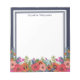 Bloco de notas floral com um belo arranjo de flores boêmicas. Adicione o seu nome em marinhos azuis modernos.