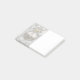 Notas pegajosas com um design de feriado mágico. Apresentando uma bola prateada de Natal com decorações em flocos de neve e terminando com um bonito arco prateado. O fundo é uma ilustração de luzes de prata com estrelas elegantes espalhadas por toda parte.