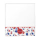Este bloco de anotações de futebol esportivo apresenta esferas de futebol tradicionais, de estilos vermelhos, brancos e azuis, arranjadas aleatoriamente na borda inferior do bloco de anotações - o fundo branco é personalizável, assim como seu nome e monograma em um pendante de círculo vermelho e número de camisa em uma das bolas de futebol - por katz_d_zynes