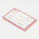 Procurando uma maneira fofa e criativa de tornar suas notas mais alegres e divertidas? Se for esse o caso, você precisará fazer check-out do novo com um quadro branco que tenha bordas escaladas e efeito de sombra de queda. Dentro na moldura, estrelas vermelhas e nuvens com arco-íris trazem um senso de leveza e tranquilidade para suas notas. E há mais! As linhas para escrever as suas notas são vermelhas, assim como o espaço para colocar a data e o seu nome, que pode ser personalizado. Com um fundo vermelho com bolinhas brancas, o é perfeito para encaixar lembretes, listas de tarefas, números de telefone ou até mesmo uma mensagem romântica para aquele especial. Então, por que continuar usando anotações chatas e simples quando você pode ter um Posto tão bonito e charmoso? Escolha o seu agora e torne as suas anotações mais coloridas e divertidas!